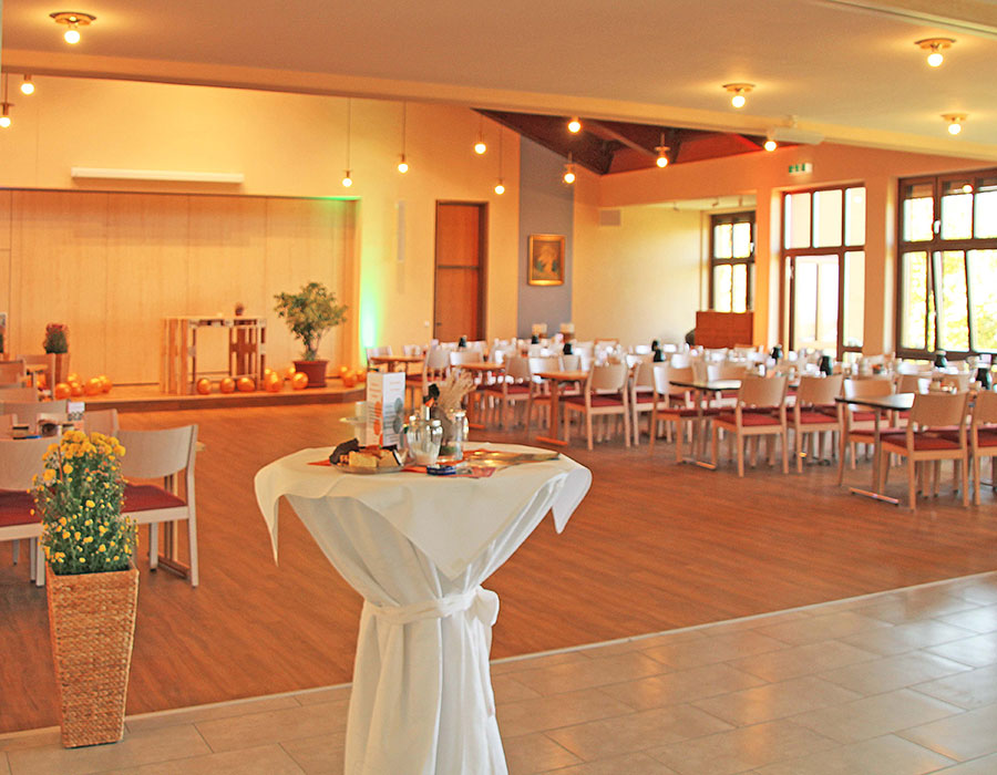 Im Foyer davor bewirten wir Sie bei Ihren Pausenmahlzeiten, einem Stehempfang oder einem Imbiss.